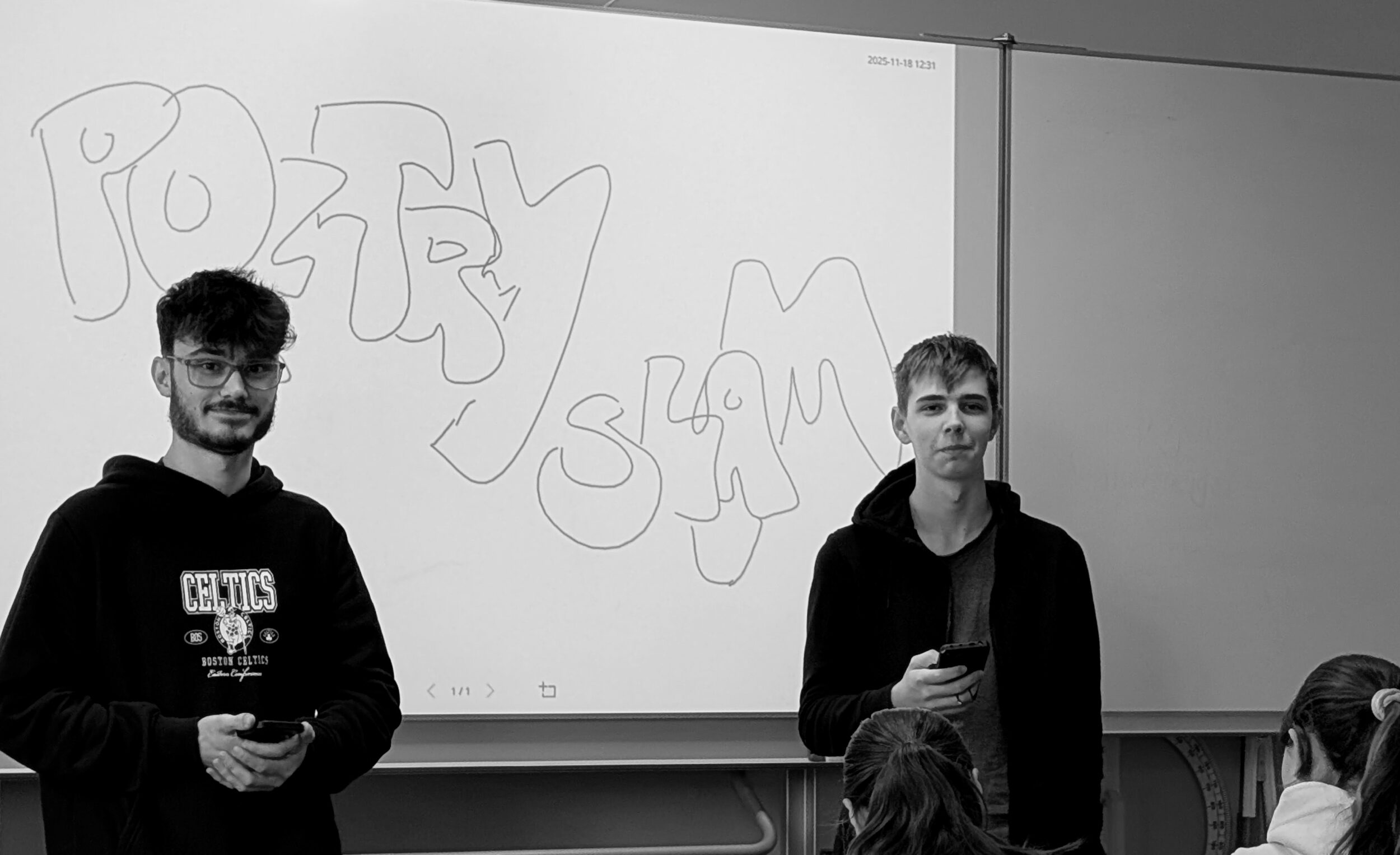 die Klasse hört zu und gleitet in die Tiefe der Worte, wo ein Bild entsteht.
