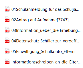 NUTZEN SIE BITTE ZUR ANMELDUNG DIE FORMULARE, DIE AUF UNSERER HOMEPAGE ZUR VERFÜGUNG GESTELLT WERDEN. –> Die Formulare sind als ZIP-Dateien gespeichert, die ähnlich wie Standardordner auf Ihrem Computer funktionieren. Hier enthalten sind alle Daten und Dateien zur Schulanmeldung.